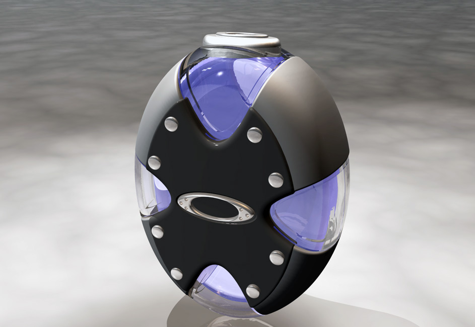 Designer Scot Oshry of Zorbit Resources created these handsome cosmetics bottles for Oakley