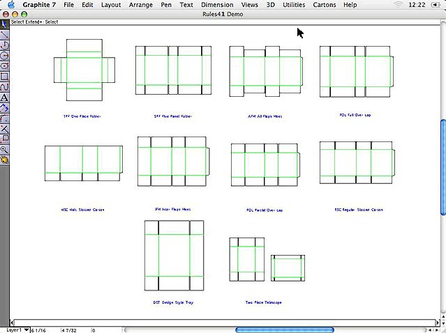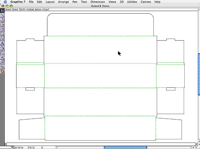 Rules creates die lines for die cuts to drive a sample table or for processing through external die design software. A box and point-of-purchase display library is included. SteelRules builds on Rules with additional features for die design.
