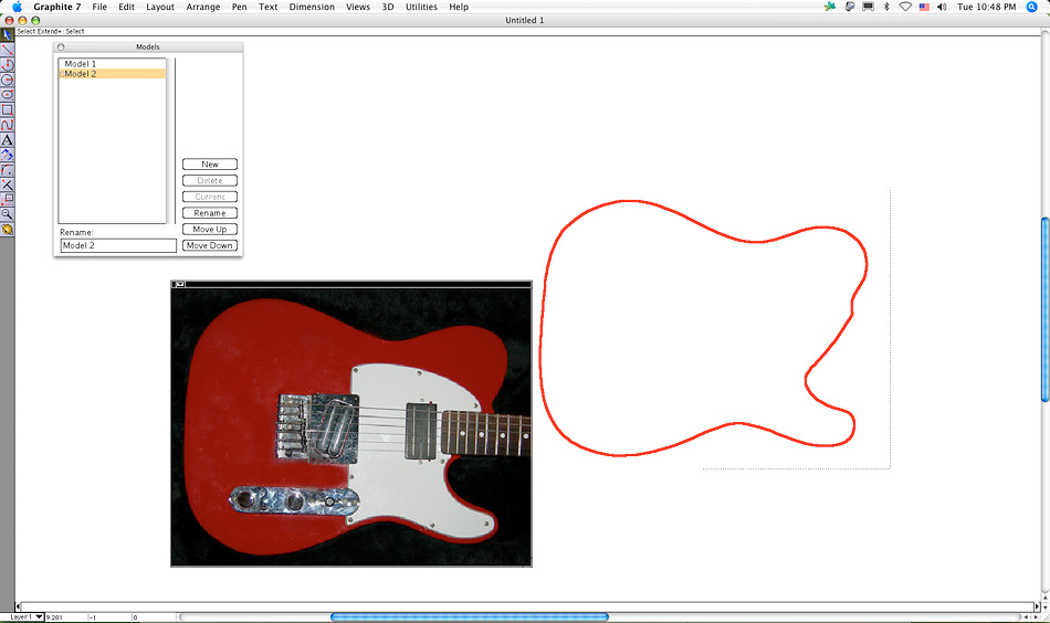In our example here, let’s say you wanted to create a wireframe drawing of the red guitar body so you could plot the pattern and use it as a template to cut it out of wood.