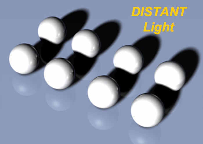 Distant lights are different, however. These are meant to simulate outdoor sunlight. They have very few settings, cast even light throughout the scene, and the shadows all go in the same straight direction.