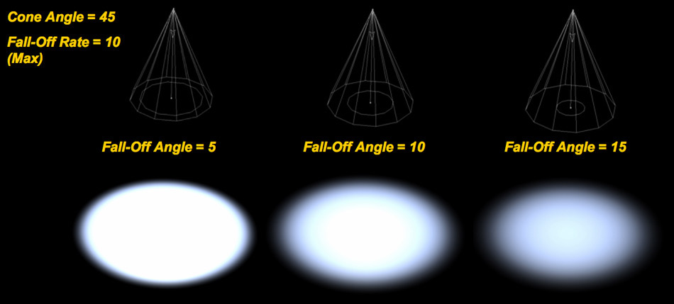 Fall-Off Angle = The angle between the outer cone and one side of the inner cone.