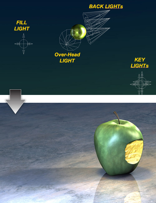 Let’s start our discussion with setting up basic lighting, how, and why. Photographers have known about the importance of light for a very long time, and they have developed some reliable techniques for setting up good lighting in a photography studio. Virtually all of a photographer’s techniques are used in 3D rendering.