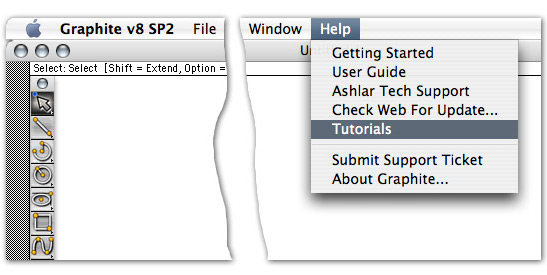 Easy access to our Graphite computer-aided drafting tutorials and sample files are added to Graphite through the Help menu.