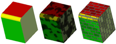 It is possible to apply different colors to each face of a 3D model. Some materials additionally adopt the color of the object faces.