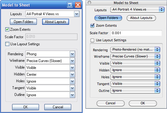 The Model to Sheet dialog box has improved support for predefined templates and information on where to find them on the system.