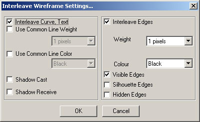 In this dialog box it is possible to enable interleaving separately for wireframe geometry and object edges. It is also possible to override color and line weight properties.