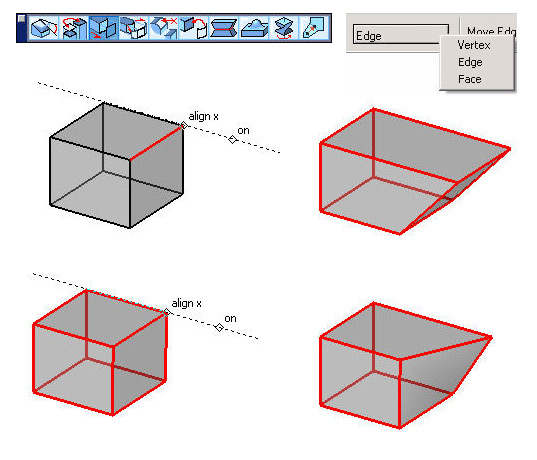 Two new options have been added to the Move Face tool. In addition to Move Face, the tool will also Move Edge and Move Vertex.