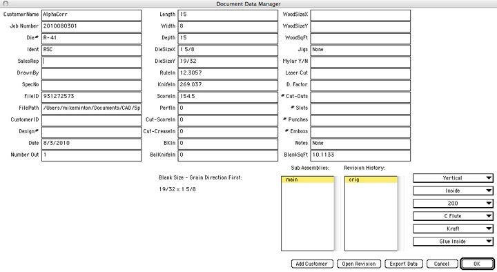 SteelRules records materials, inches of rule, customer data and other details directly in the CAD file in an easily searchable and exportable format. Integrates with Windows Desktop Search and Mac OS X Spotlight. Custom ERP/MRP integrations are available, such as Amtech, HRMS and Solarsoft.