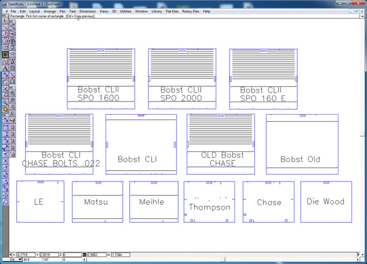 Choose from a wide array of customized die board templates for complete rotary and flatbed dies for all common die cutters. Then apply jig rails, counters, blankers, strippers, and grippers from our adjustable library to rapidly finish your project.