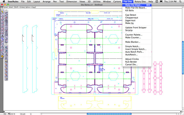 Layout the most complex cutting dies for packaging and point-of-purchase displays with male and female stripping jigs and blankers in a matter of minutes. Create flatbed and rotary dies, then precisely output to rule benders, printers, plotters and sample tables including lasers.