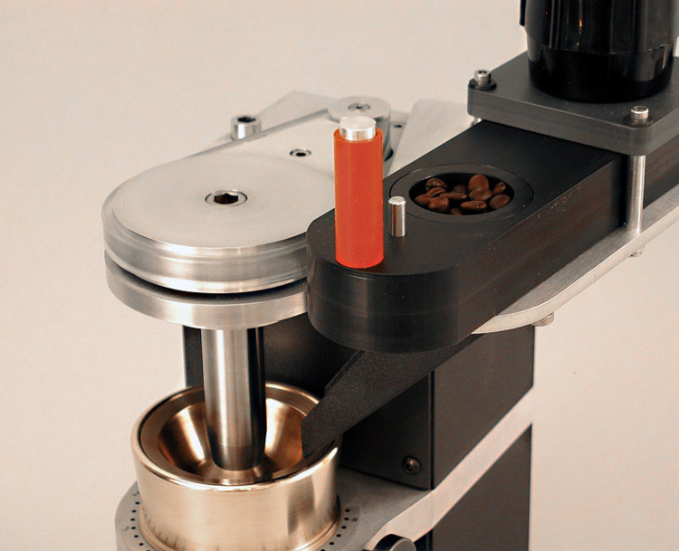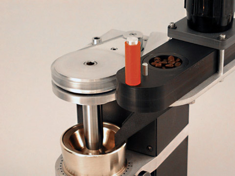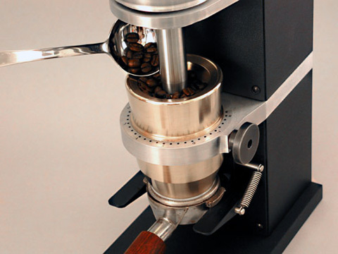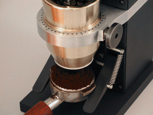 One idea was for a dosing hopper which, unlike conventional grinders, delivers a single dose of beans to the grinder each time, preserving freshness. Pull the handle on the hopper and a premeasured dose of beans goes down the chute and is ground in the portafilter.