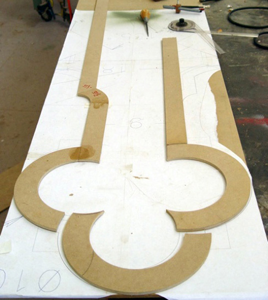 As Jueri draws in Xenon he virtually builds the part just as he will literally build it later in the shop. This helps him avoid mistakes and prevents him from designing something that can’t be built. He also uses Xenon to create templates that he prints on his tabloid-sized printer, cuts out and then adheres to the piece of wood using contact cement to use as a guide for cutting.