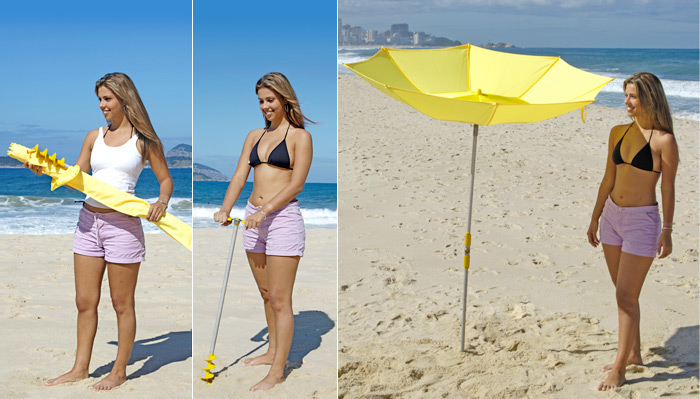 Celso Santos and Christian Albanese of Rio 21 Design have good reason to be proud of their Spirit beach umbrella. Like all residents of Rio de Janeiro, Brazil, Celso and Christian have spent their lives on the city’s famous beaches. It is only natural that these innovative designers would come up with a new umbrella with three unique features solving several common problems.