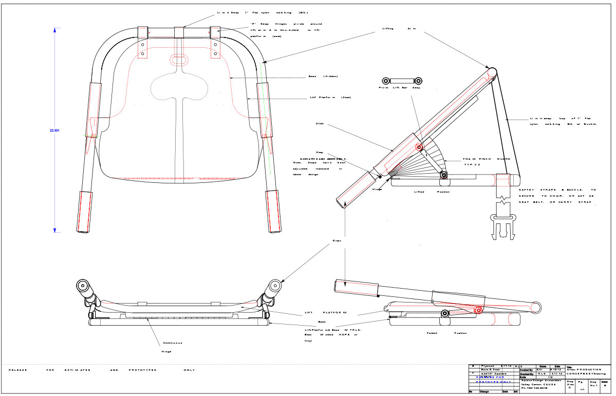After hip surgery he purchased a seat assist product that had been on the market for decades and found its limitations disappointing. Having designed hundreds of medical rehab and fitness products he decided he’d build his own seat assist using Ashlar-Vellum Graphite™ and Xenon™ software. After more than a dozen prototypes he eventually decided that the simplest solution was the best. He tells us, “It will lift 100% of my weight without any springs or gears or pistons or motors. It just uses leverage. So the more someone weighs, the more it will lift.”