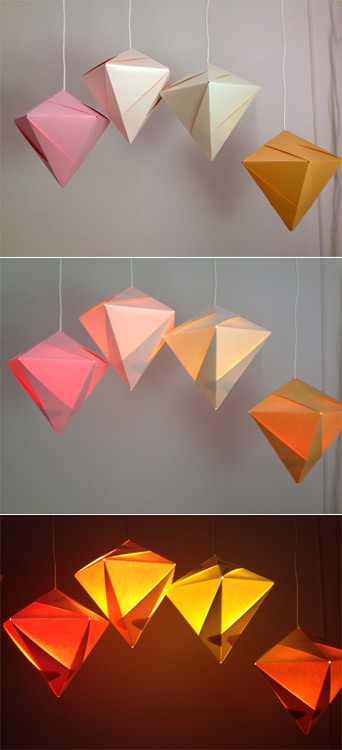 She started a line of lights that she calls by that name, wanting to make them accessible, beautiful and well priced. Die cut from paper, the lights fold flat for shipping and expand over a light bulb. Several are designed especially for custom artwork, and can be printed for weddings and as promotional items.