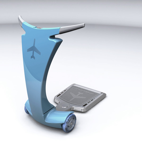 The On-Track scooter whisks passengers through international airports at a brisk 6.2 miles/10 kilometres per hour (about jogging speed). The sleek vehicle features an electric motor that is easily recharged at convenient docking stations and includes a GPS system for easy navigation between tight connections.