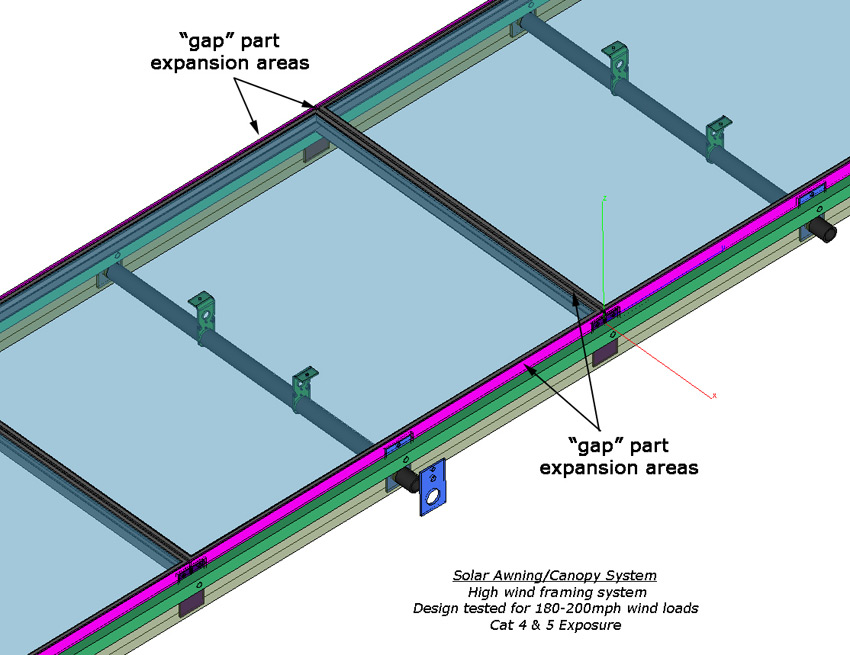 For example, Brunt has a unique way of designing gap tolerances necessary with a number of materials. Awhile back, while struggling with the tolerances on a stainless steel cabinet he had an epiphany, suddenly realizing that in Cobalt the gap could be a parametric part. Instead of over-thinking everything, trying to go from the part forward, Brunt started designing all the gap tolerances to be a gap of air. The air itself was designated as a solid. This became critical when he later began designing solar array systems with their inherent issues of expansion and contraction where glass must be able to float. Says Brunt, “It was a very powerful design feature that I don’t think a lot of people use.”