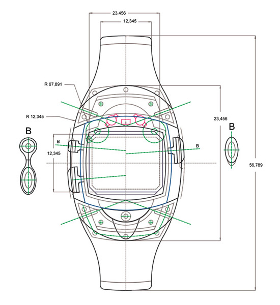 When Luc designs sports products like this heart monitor, he starts with the integrated electronics from his client, including the printed circuit board and LCD display. Then, using Graphite, Luc lays out the components getting the chips, receivers, contact keys and buttons into the best place. “Graphite is a better 2D/3D CAD solution because it is easy to move parts around. You don’t have to be an engineer to run it,” commented Luc.
